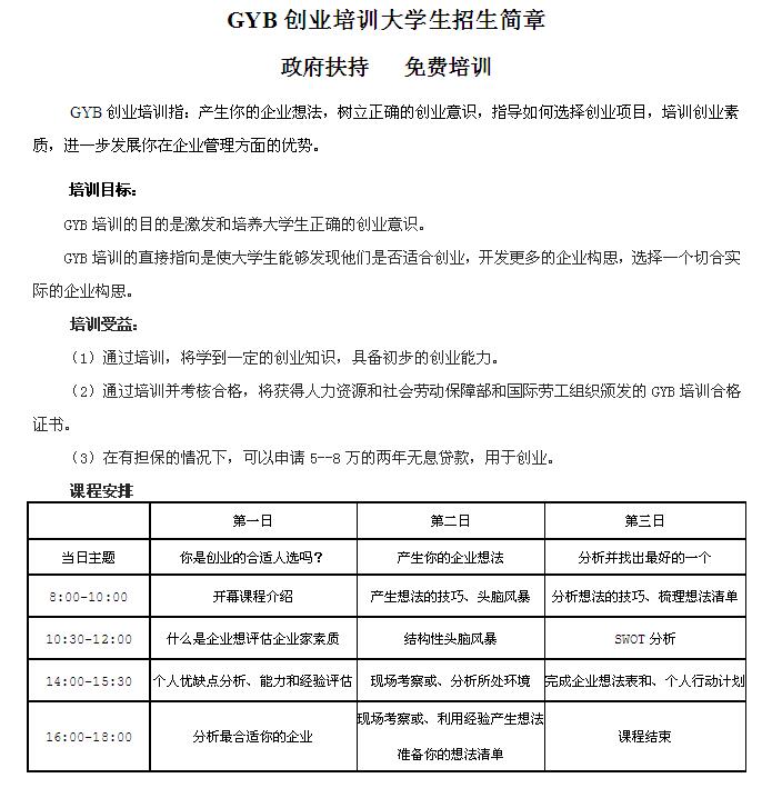 2015年下GYB创业培训第一期报名通知