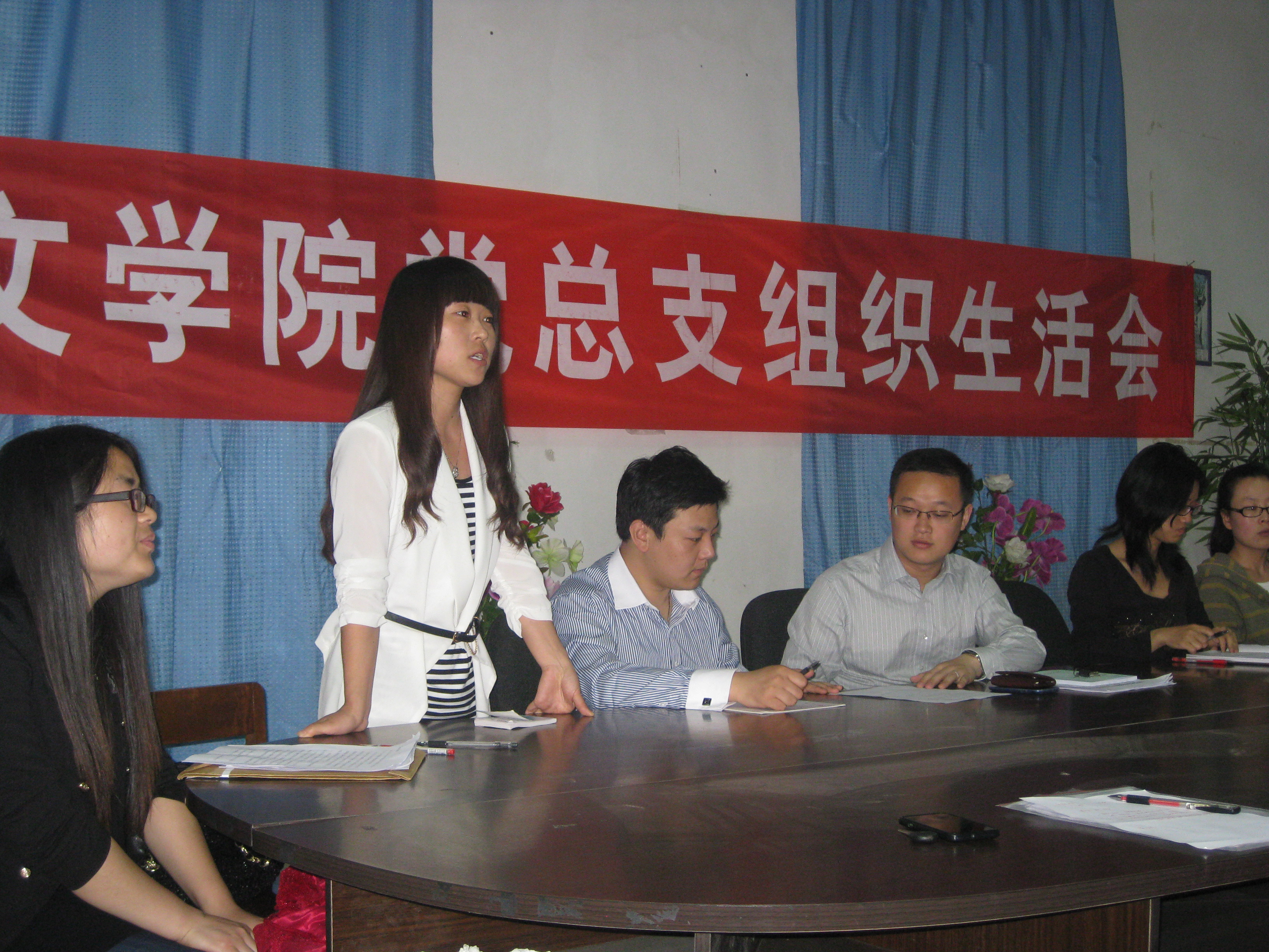4月25日,人文学院党总支在8号楼301召开组织生活会,积极落实学院党委关于党内组织生活会制度的新要求。 组织生活会由人文学院党总支副书记冯鑫主持。会上,冯书记就十八大报告中关于办好人民满意教育的有关精神和学院党委关于组织生活会制度的新要求进行传达,并就学生和广大党员心系雅安人民、理性表达爱心发出倡议。 会上,学生党支部书记李卓兴、教工党支部书记杨雪飞分别就本学期学生党支部和教工党支部的组织生活会安排作了通报。