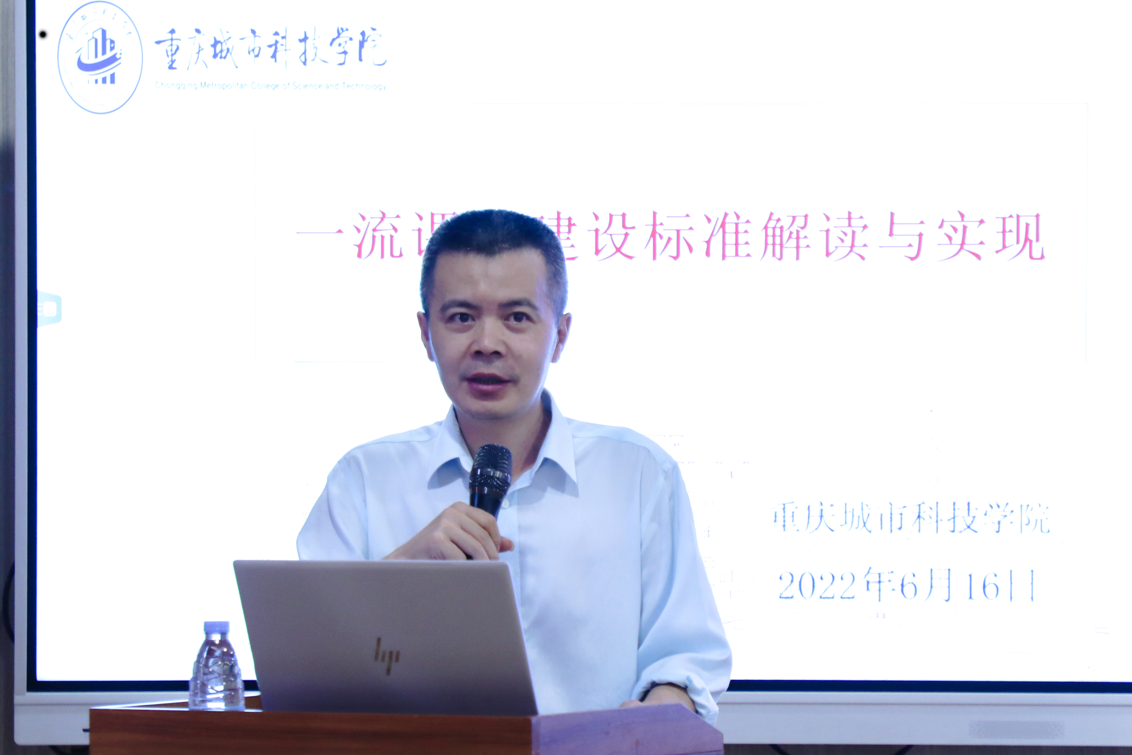 重庆高校在线开放课程平台运营副主任、昭信教育科技集团数字化教学服务中心副主任谭培亮就线上一流课程建设相关标准解读与实现进行了讲解。