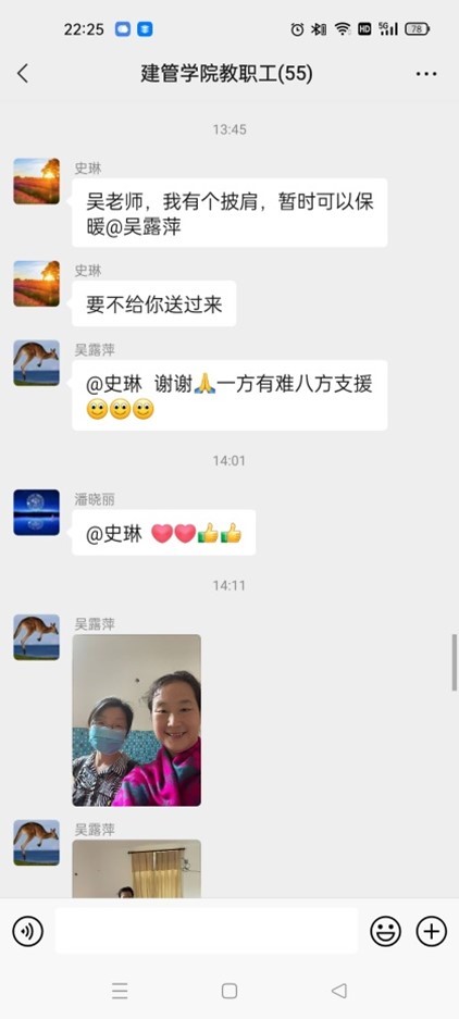 由于封校突然,带给滞留校内的教师生活不便,在校居住的教师们纷纷伸出援助之手,调剂住宿、衣物和日常生活用品,让滞留教师暂得依靠,保障这部分教师安心教学工作。