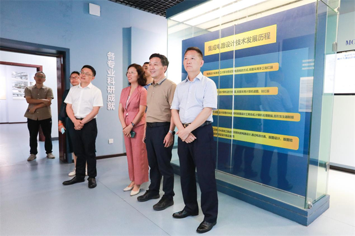 此行是考察我校将集成电路创业史陈列馆作为科学家精神基地的申报建设情况,重点查看了解陈列馆的管理制度、讲解团队和科学家精神宣传教育活动等情况,在调研参观过程中,颜朝华对于原1424研究所的保护工作给予了高度的肯定。