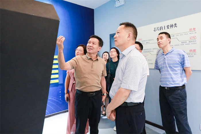 2022年9月20日下午,重庆市科协党组成员、副主席颜朝华,市科协宣传文化部部长王昌志,市科协宣传文化部一级调研员王绍伟等领导,在永川区区政协副主席漆远英,区科协党组书记、主席罗炽长,区科协副主席邹世珍,区科协工作人员周舟等相关领导的陪同下,莅临我校开展关于集成电路创业史陈列馆的调研工作,学校领导刘学民、田妍妮陪同调研。