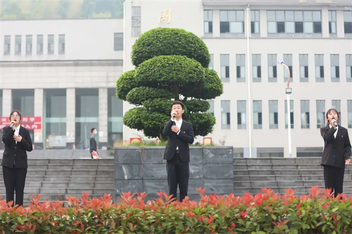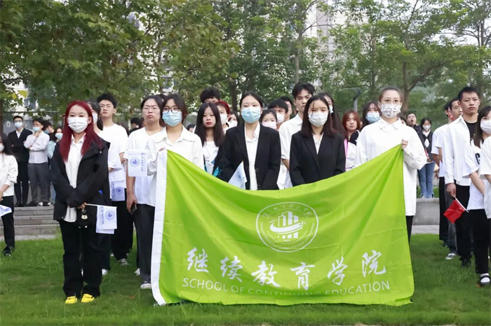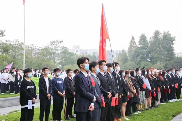 在场人员慷慨激昂、目光如炬,欣望江山千里秀,欢颂祖国万年春。五星旗帜飘扬在头顶,城科师生铿锵有力的歌声回荡在耳畔。
