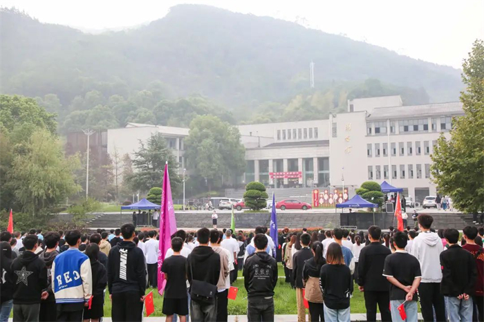 为厚植城科学子爱党、爱国、爱校的优良传统,彰显广大青年“永远跟党走、奋进新征程”的时代风貌,团结引领广大学子坚定跟党走、建功新时代,以实干实绩迎接党的二十大顺利召开,2022年9月26日7:20,重庆城市科技学院于图书馆前开展“开学第一课”主题升旗仪式。学校领导、学生处、团委负责人、二级学院党总支(副)书记、团总支书记,2022级师生代表以及校青马班、团校成员共计800余人参加此次仪式。