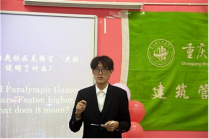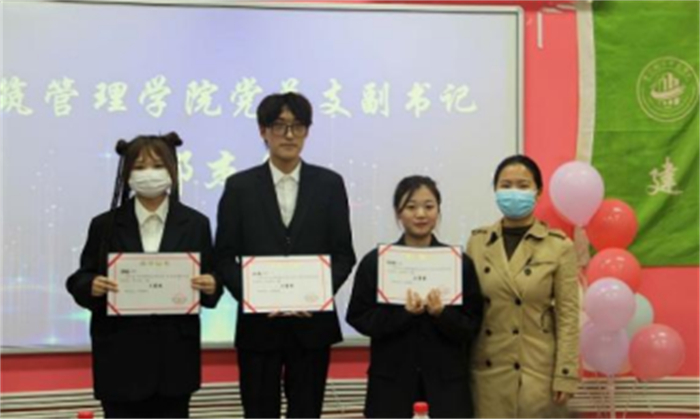 建筑管理学院党总支副书记邓杰予为获得三等奖的选手颁奖!