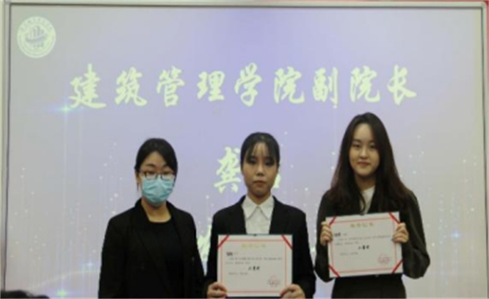 建筑管理学院副院长龚洁为获得二等奖的选手颁奖!