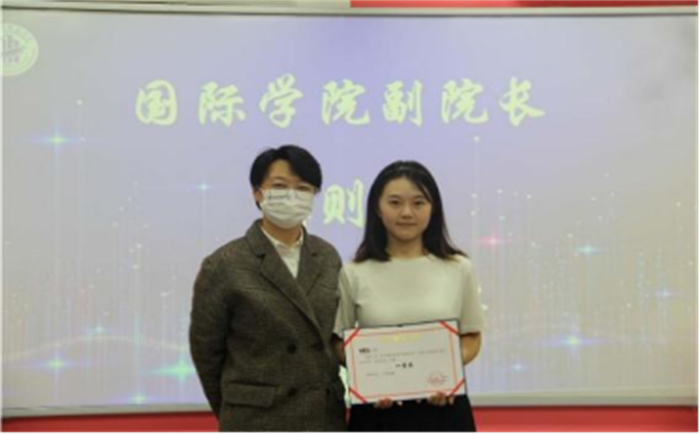 国际学院副院长范则言为获得一等奖的选手颁奖!