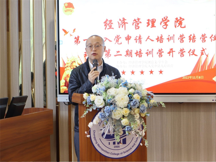 为深入学习习近平新时代中国特色社会主义思想,积极响应习近平总书记关于青年工作的重要思想,持续深化党团学习教育,切实加强青年队伍思想政治建设。经济管理学院第二期“青春向党,星火之光”入党申请人培训营于11月8日中午采取线上线下相结合的方式开展第一次理论学习。本次理论学习由经济管理学院党总支书记、副院长冯鑫主讲,班组长及全体营员参与。