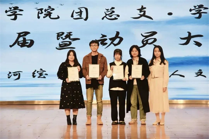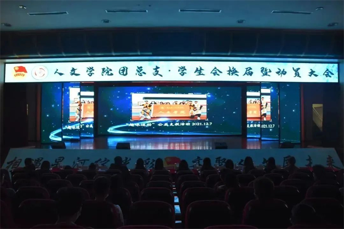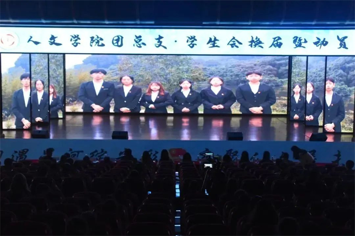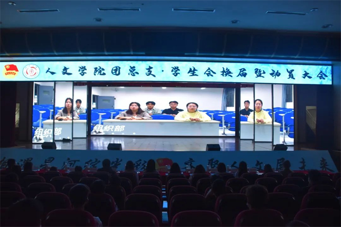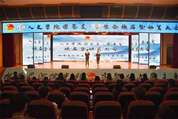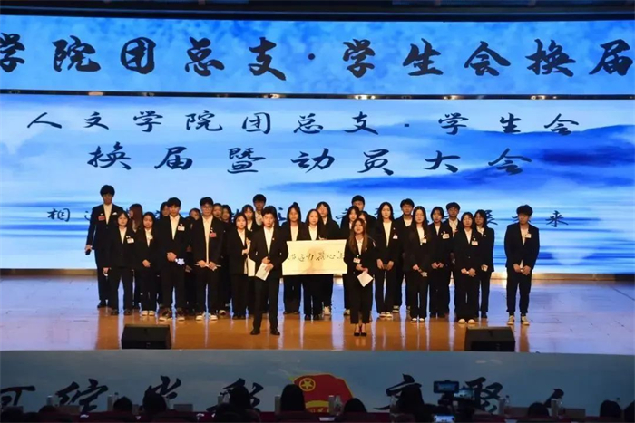 相遇星河遇光彩,齐聚人文展未来。为增强大学生的集体意识感、提高自我的素质技能以及自我的管理协调能力,提高团学骨干团队管理,建设为同学服务、积极向上的团学队伍,确保人文学院团学工作的顺利承接和开展。11月11日下午,人文学院于第一学术报告厅顺利召开第十六届团总支·学生会换届暨动员大会。校团委指导老师谷婷、建筑与土木工程学院团总支书记胡欣、体育与大健康学院团学指导老师主持工作王胜蓝、人工智能与大数据学院团学指导老师黄美雪、电气工程与智能制造学院团学指导老师田晓红、建筑管理学院团学指导老师马利亚、人文学院党总支副书记龚艺、党总支组织委员田甜、学生第一党支部书记郎月婷、学生第二党支部书记赵曦、学生第三党支部书记李建霞、团总支书记白松、团学指导老师文鸿敏、兄弟学院团学代表、人文学院辅导员们以及团学成员代表参加此次大会。