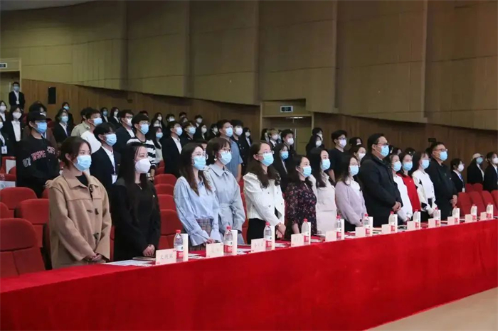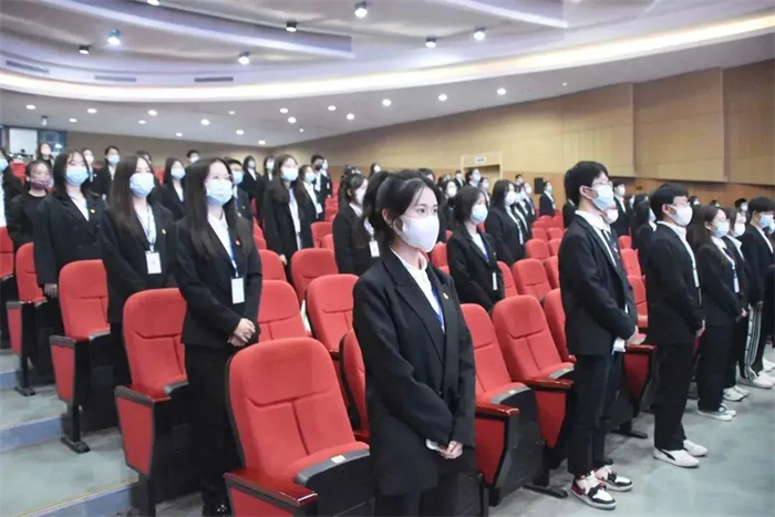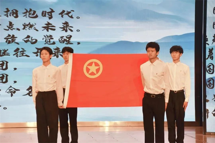 迎团旗,奏唱团歌。护旗手铿锵有力的步伐,昭示着团学成员的青春之力。鲜艳的共青团团旗,折射出团学成员的赤诚之心,嘹亮的团歌声,唱响了彼此心中的坚定信念。