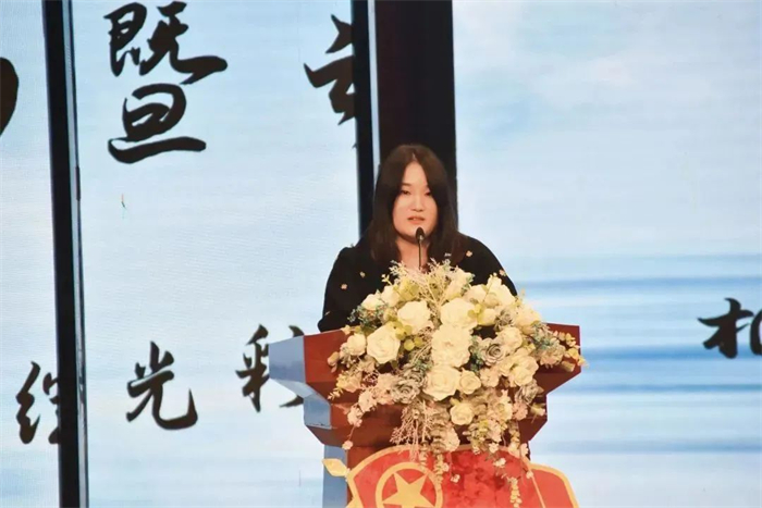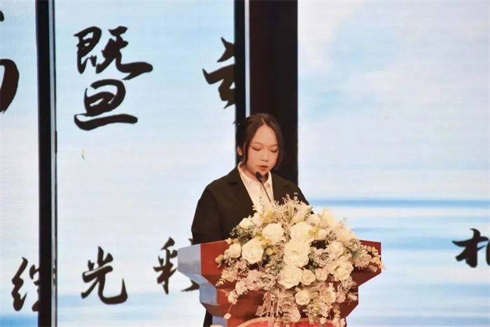 第十六届学生骨干代表王文欣发言,她表示在过去的一年里,团学成员努力探索、追求卓越,成就了不平凡的一年。她也为今后团学工作提出如下期望,期望每位团学成员都能够“在其位,谋其职,担其责”,能够有效率、有质量地完成工作任务,积极改进自我,严格要求自己,提高自身综合素质。其次,希望人文团学这个大家庭的所有成员都能够团结一心,加强合作,积极发挥示范带头作用,始终将服务作为工作的出发点,积极与各位老师、各位同学、各个部门之间保持紧密联系,为人文学院团总支·学生会的发展提供源源不断的动力。