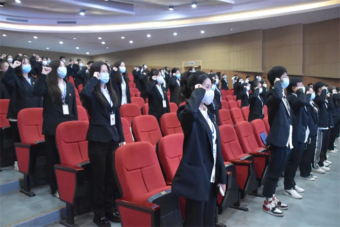 在第十六届学生骨干闫缘圆的带领下,全体团学成员庄严宣誓,誓词字字镌刻于心,人人严肃认真,新一届团学成员必将扛起责任与重担,为人文团学奋勇前行,增光添彩。