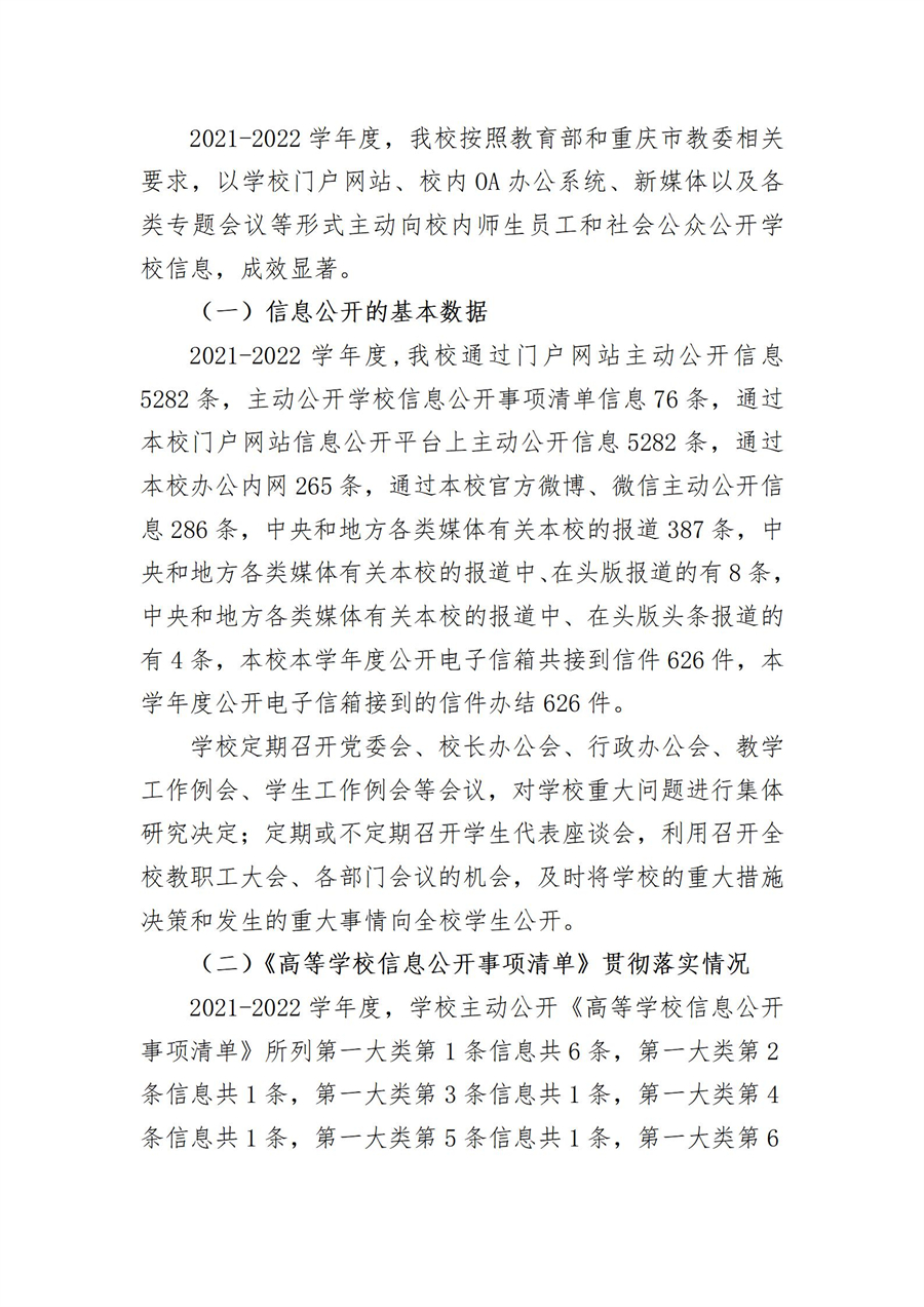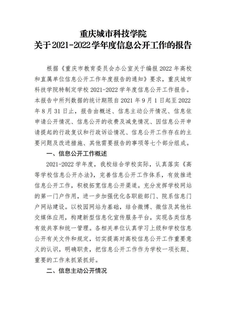 重庆城市科技学院关于2021-2022学年度信息公开工作的报告