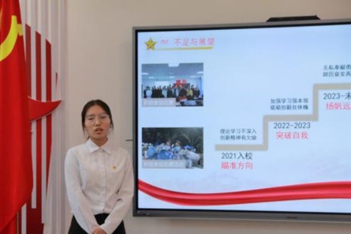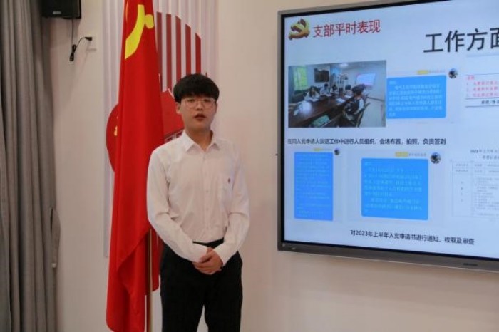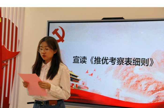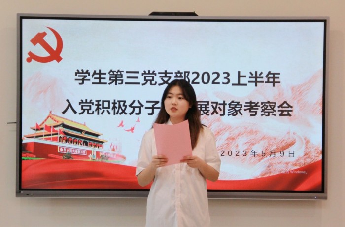 会议开始,青年委员袁雪同志对本次考察会的规则进行介绍。紧接着,支部书记徐晗同志致辞,她表示:“此次考察会旨在让支部进一步了解各位积极分子的政治觉悟、道德品质、入党动机及工作学习表现,希望各位入党积极分子把握机会,期待各位的精彩表现。