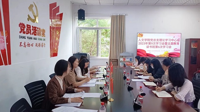 2023年6月15日,人文学院理论学习中心组2023年第九次学习会暨主题教育读书班第6次学习会于学院二楼办公室召开。