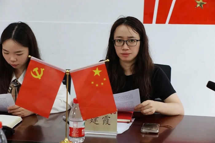 学生第三支部书记李建霞领学《袁家军主持召开重庆市积极融入“一带一路”加快建设内陆开放高地领导小组会议》,她提到要以全面深化改革为动力,构建目标体系和工作体系,层层压实责任,全面深化改革,奋力开创内陆开放高地建设新局面。