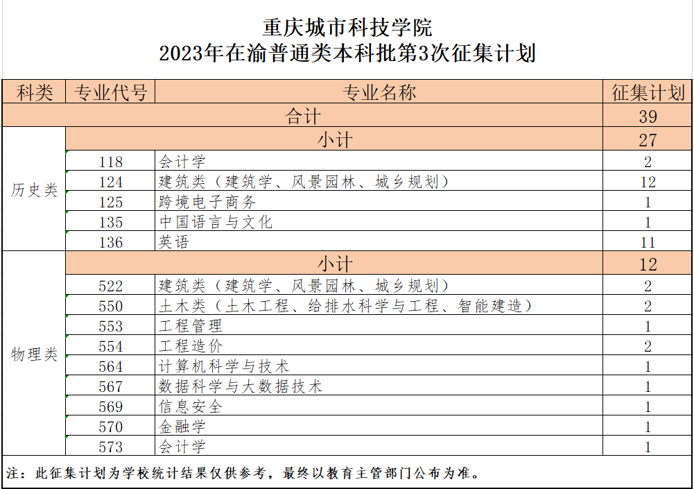 学校在重庆市普通类本科批平行志愿投档录取后,许多同学都希望学校进行征集。为了给广大考生提供更多的报考机会,按照重庆市普通类本科批征集志愿的安排,学校在重庆市普通类本科批将进行征集,现将征集志愿的有关事项公告如下: