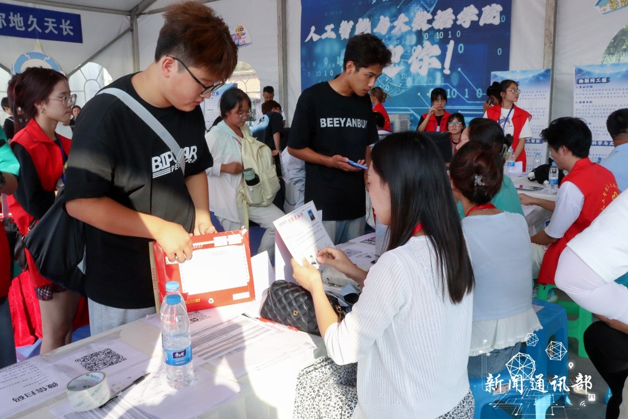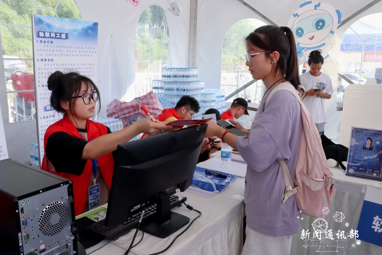 服务暖人心,聚力迎新生。迎新工作志愿队伍由教职工志愿者和学生志愿者构成。学生志愿者们以最饱满的热情和最真诚的态度迎接前来报到的学生和家长,帮助新生搬运行李,入住寝室,引导新生完成身份核验、登记信息、领取校园卡等流程。由学院辅导员老师组成的教职工志愿者们也坚守在迎新现场有条不紊地收取新生材料、核实身份信息,耐心地为新生解答相关问题。