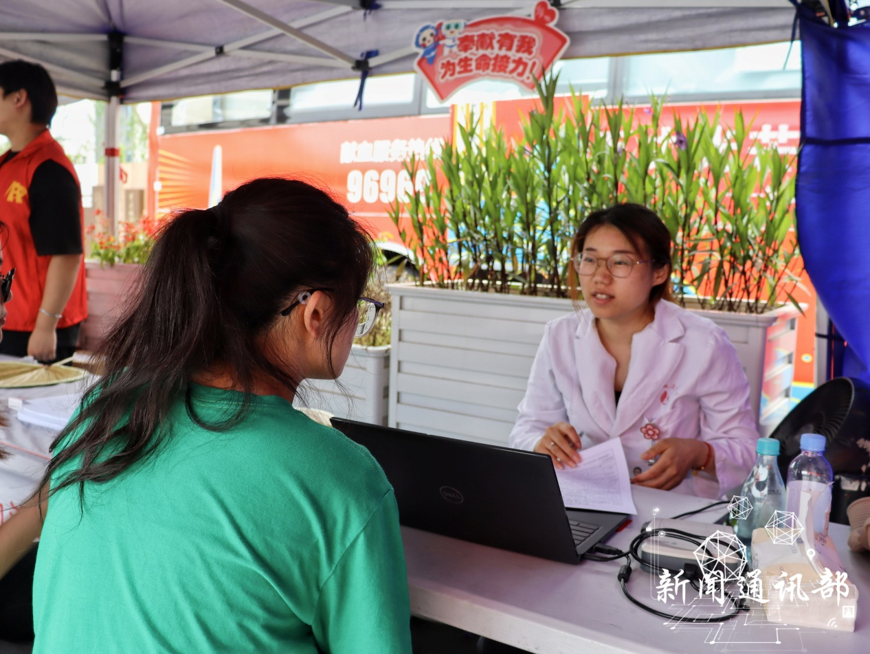 活动现场,同学们前来咨询有关献血的注意事项,填写登记表单,积极参与无偿献血。志愿者们维持现场秩序,配合血液中心工作人员工作,推动献血的有序进行。每一位献血的同学都在登记处确认自身符合献血的基本条件,并经过医护人员的详细检查。