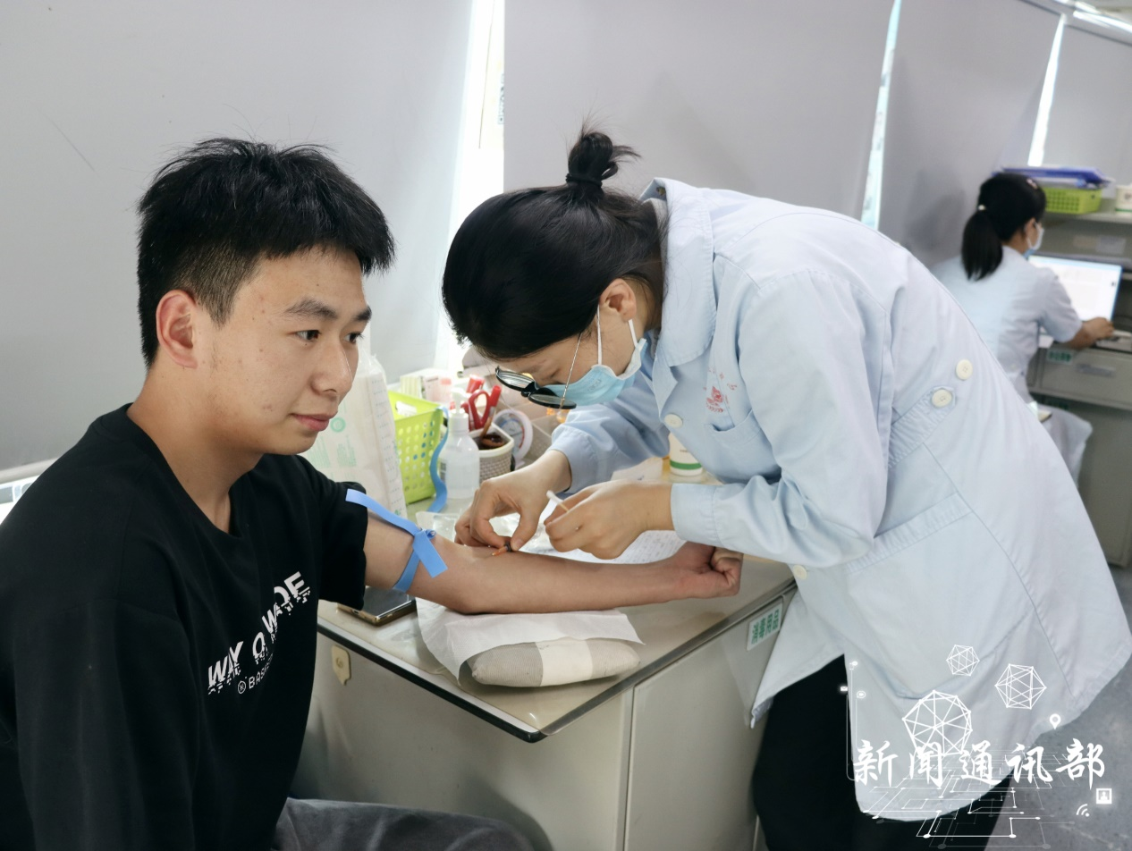 在采血过程中,大家相互鼓励,气氛融洽,在重庆市血液中心工作人员的指导下,积极配合伸出胳膊,让充满爱心的热血缓缓流入一个个储存袋,用可再生的血液挽救不可重来的生命。献血完后,在志愿者的引领下,献血人登记姓名、班级,并领取精心准备的献血纪念品。