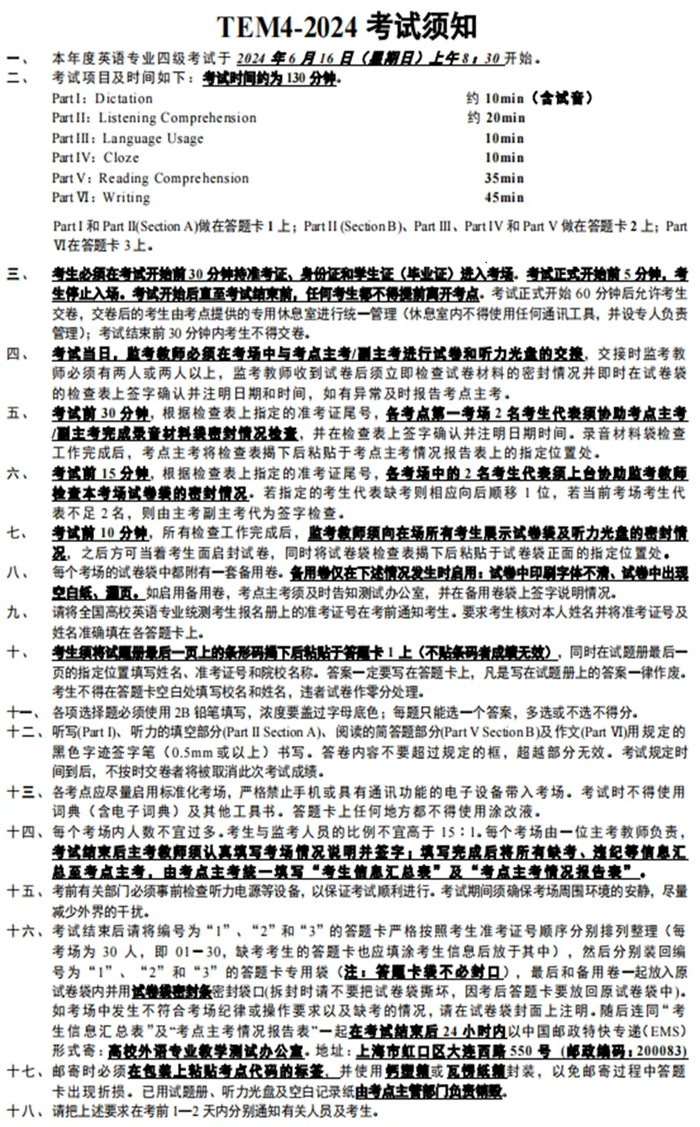 关于2024年全国英语专业四级(TEM4)考试的通知