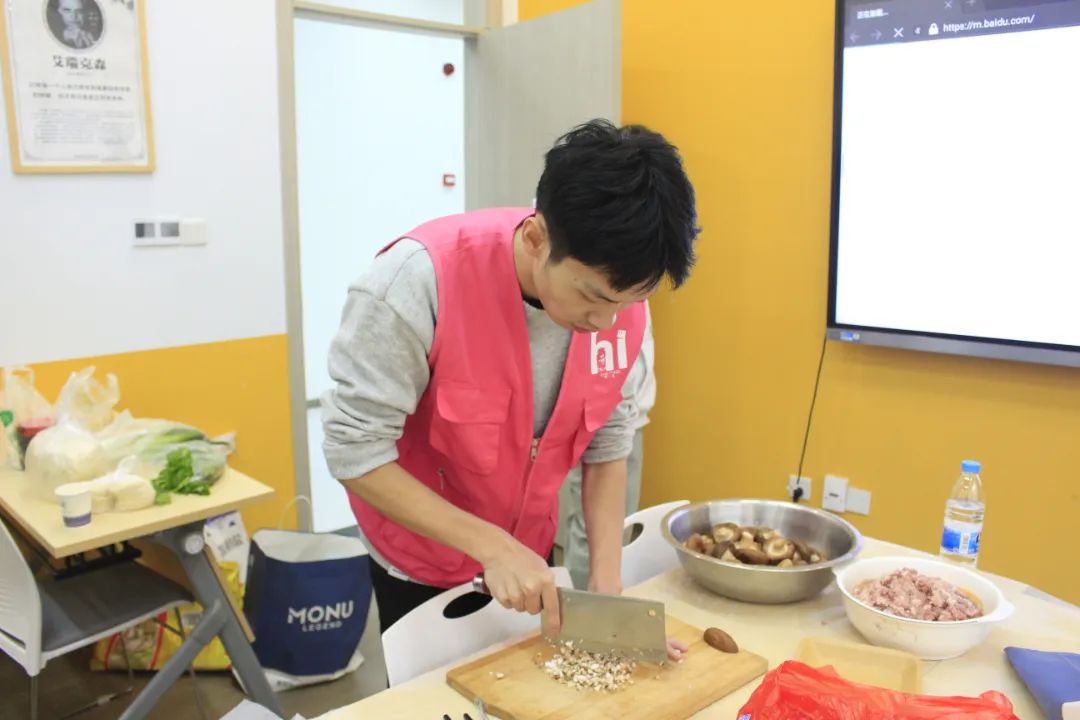 活动现场,师生们先准备饺子馅的材料。新鲜的猪肉、白菜、韭菜等食材整齐地摆放在桌上,散发出诱人的香气。大家分工明确,有的负责洗菜切菜,有的负责剁肉拌馅。在欢声笑语中,饺子馅便制作完成了。