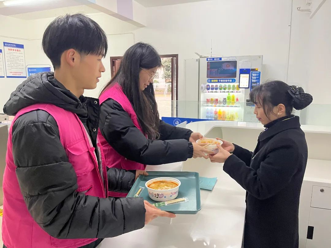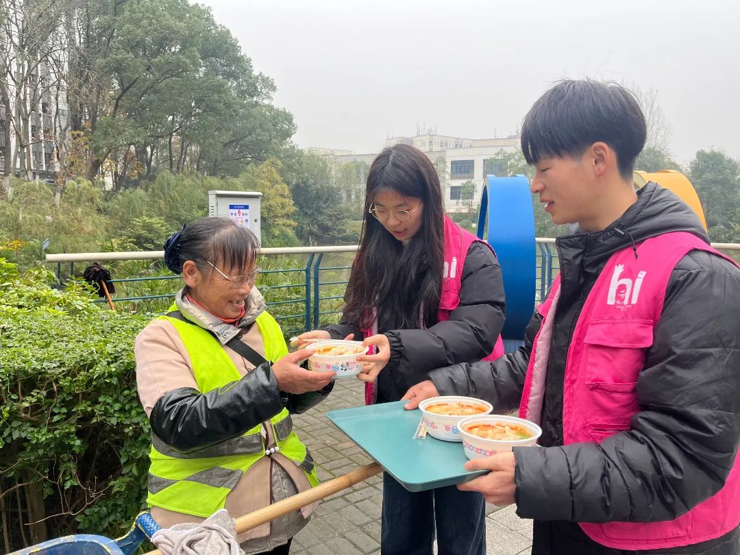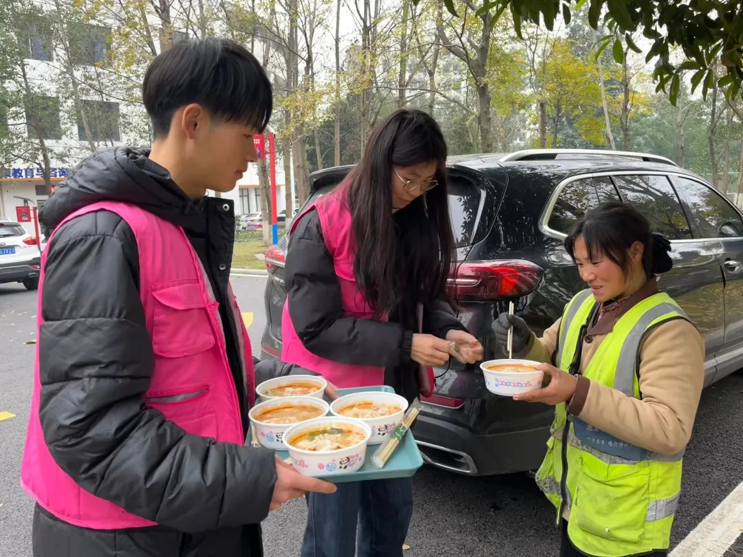 “吃饺子喽!”在一声吆喝声中,一个个雪白饱满的饺子摆满了“餐桌”。浓郁的饺香顷刻四溢。过程中的忙碌一起藏在饺皮里,成为了下肚的快乐,此刻,师生们不忘在城科校园辛勤劳动的环卫叔叔阿姨,在寝室值守的宿舍阿姨,带上自己亲手包的饺子,为叔叔阿姨们送上了冬日的一份温暖,饺子虽小,暖意无限。