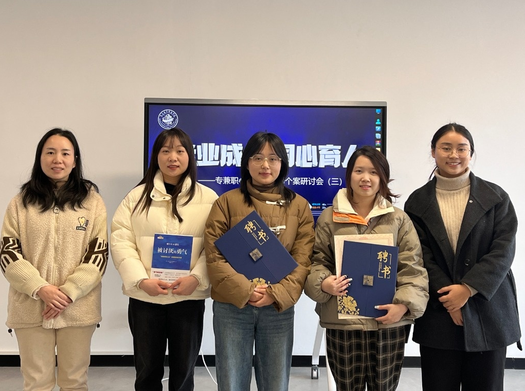 研讨会上,数位兼职心理教师敞开心扉,分享了近期在心理工作中遇到的种种挑战与复杂个案。面对这些棘手难题,专职教师们以丰富的经验和独到的见解,为兼职同行们提供了应对之策。随后,曾老师为兼职心理健康教师们颁发了聘书,对他们的辛勤付出给予肯定与鼓励。与此同时,心理中心专职教师李文涛与付小庆为每一位兼职教师赠送了心理相关的书籍,以此作为他们心灵探索之旅的宝贵指南。