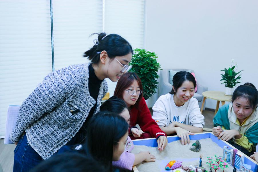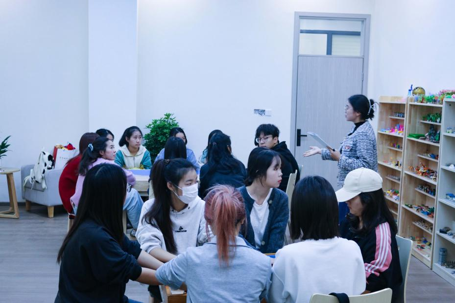 认识沙盘,看沙具、抚沙子、摆沙盘;在安静自由的环境下,同学们通过沙盘作品这种灵性的流动方式来表达内心世界,通过分享与讨论促进交流,体验奇妙的沙盘世界。