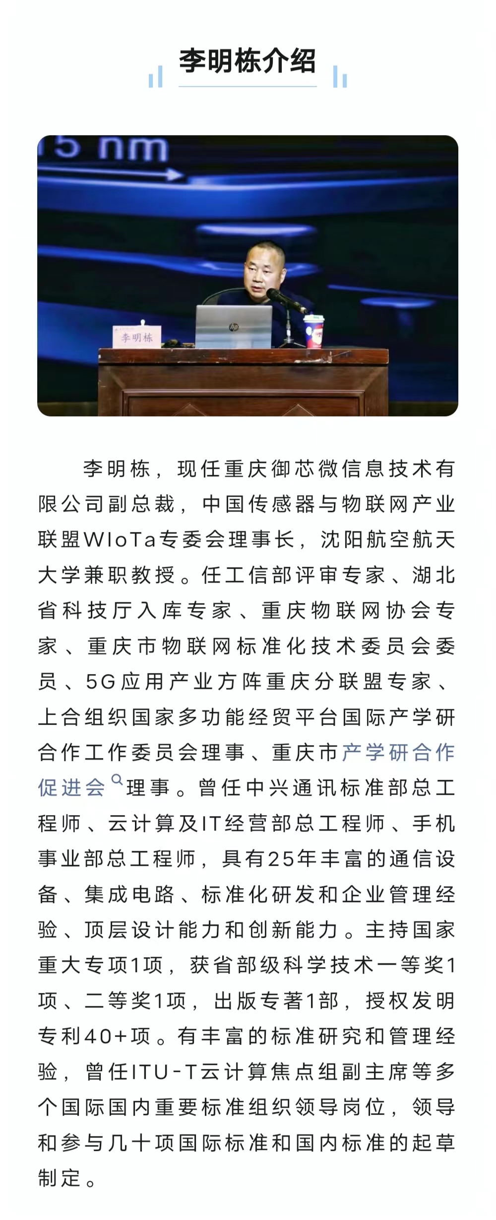 守正铸魂,赓续传承。11月28日,重庆城市科技学院特邀重庆御芯微信息技术有限公司副总裁李明栋于我校第一学术报告厅作“芯片技术创新赋能物联网的感传知控”专题讲座。学校党委副书记、副校长贾瑞出席并表示热烈欢迎,学生处处长马健、副处长吉春元、各二级学院党总支(副)书记及学生代表参加本次讲座。此次讲座由吉春元主持。