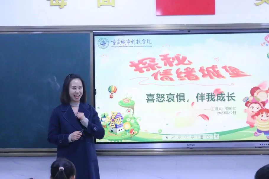 为宣传普及心理健康知识,让青少年儿童正确认识并表达情绪。12月8日下午15:30,重庆城市科技学院心理健康教育与咨询中心教师曾朝红带领心理骨干学生走进红旗小学文昌校区,开展了一堂“探秘情绪城堡”的心理健康课。