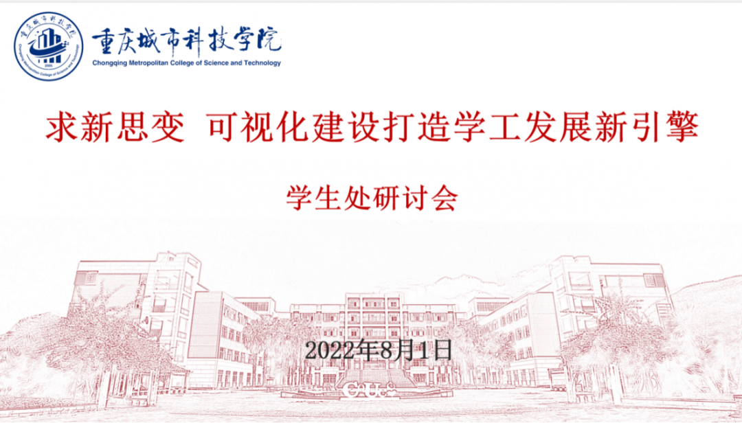 为将我校学生相关工作制度流程、工作成果直观化展示,推动学生工作逐步实现标准化、规范化,为新学期学生工作开好篇、布好局。8月1日下午,学生处秉持“围绕学生,关注学生,服务学生”的工作理念,召开“求新思变 可视化建设打造学工发展新引擎”主题研讨会,共同探讨学生工作可视化的新思路、新举措。学校副校长郭建礼、学生处处长马健、团委书记兼学生处副处长万毅、学生处副处长吉春元及学生处各科室老师参加会议。