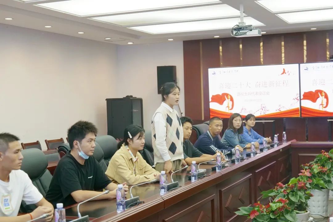 会上,退役士兵们踊跃发言,纷纷介绍了自己的从军经历,并着重谈到了部队带给自己的改变以及这些改变对自己回归校园后的学习、工作、生活带来的影响。同时大家也为学校征兵工作和退役士兵管理提出了建议。