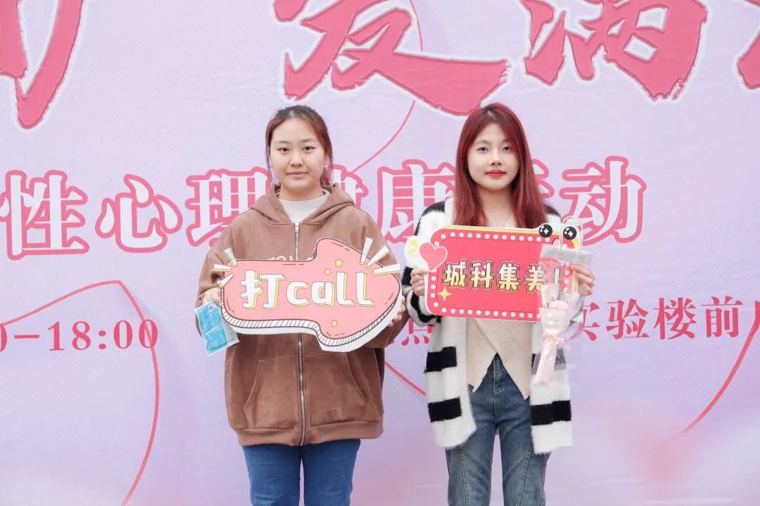 为满足师生美好校园生活需要,丰富校园文化,帮助女性缓解学习、工作、生活中的压力,提高学习工作热情,积极乐观生活。3月7日,我校在综合实验楼前广场开展了“城”心守护 爱满校园——关爱女性心理健康活动。