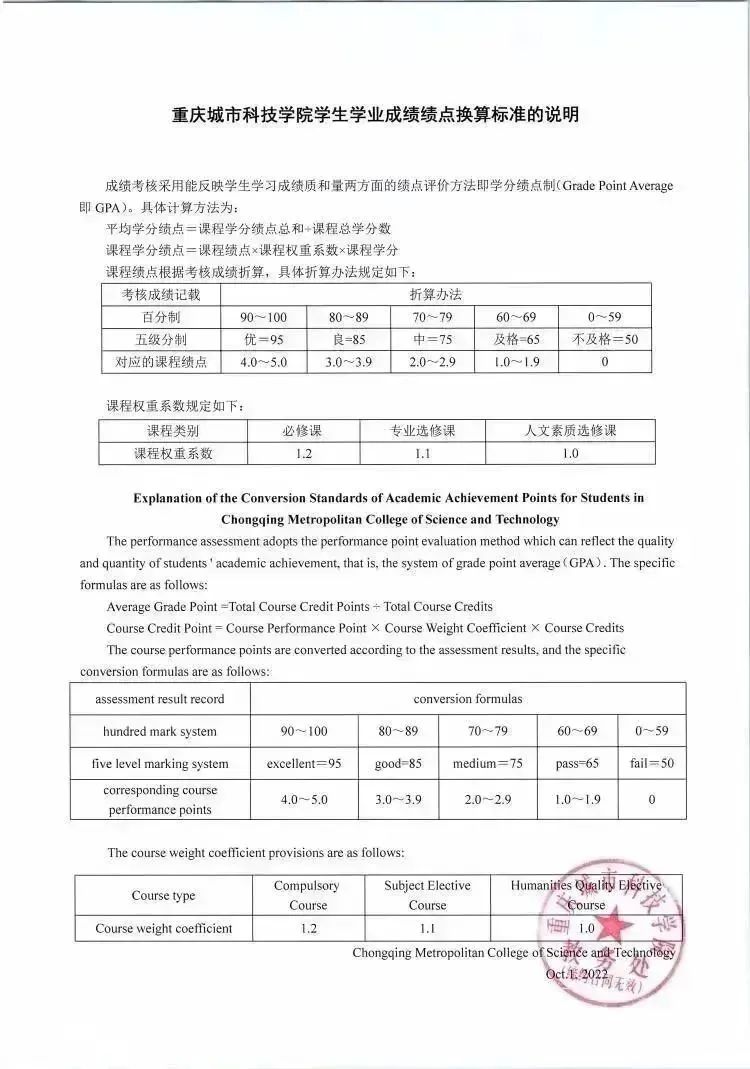 重庆城市科技学院绩点具体计算方法如下(附图)