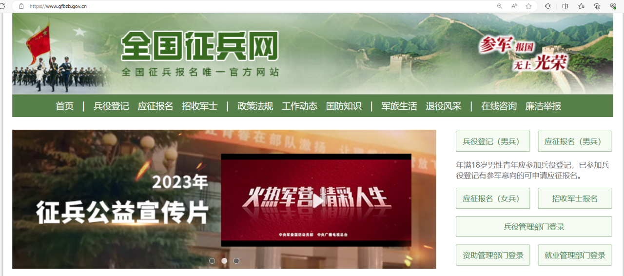 划重点:全国征兵网https://www.gfbzb.gov.cn/是全国征兵报名唯一官方网站!
