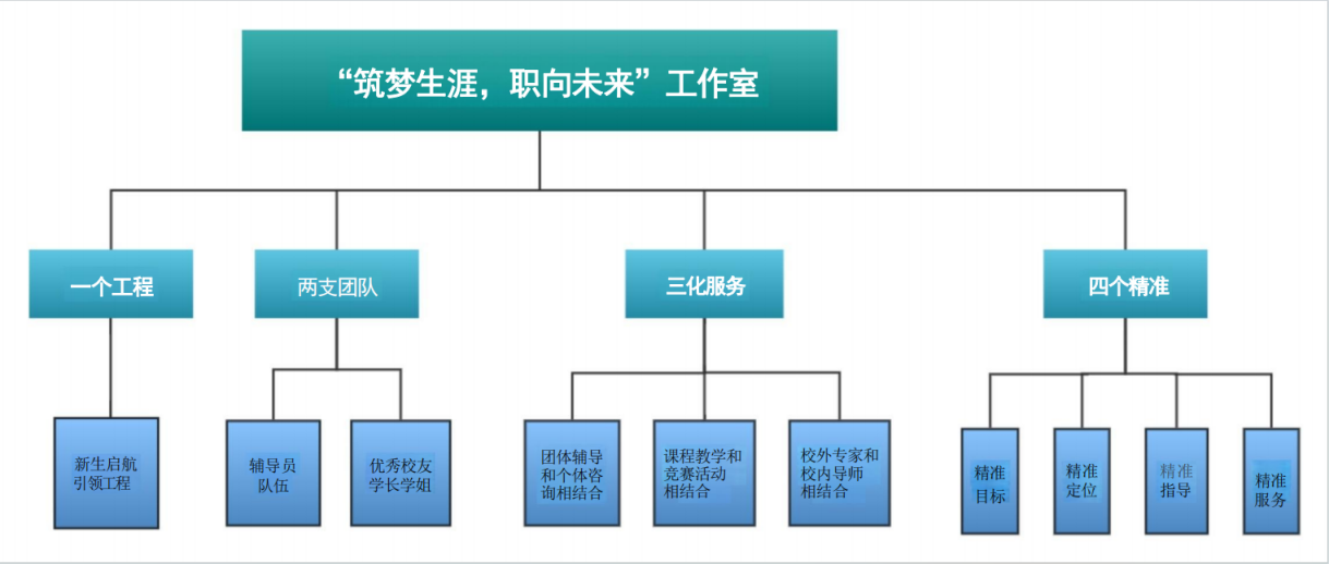 “筑梦生涯,职向未来”辅导员工作室,牢记习总书记对新时代青年的期待和嘱托,通过新生引领工程和党员先锋助管入驻大一新生班级,帮助低年级学生不断完善职业生涯规划,准确把握大学生就业工作的内涵和外延,不断加大对大学毕业生就业工作的指导和服务力度,积极探索新形势下提升高校学工队伍就业工作水平的新观念、新渠道、新方法,推动大学毕业生实现更加充分和更高质量就业。
